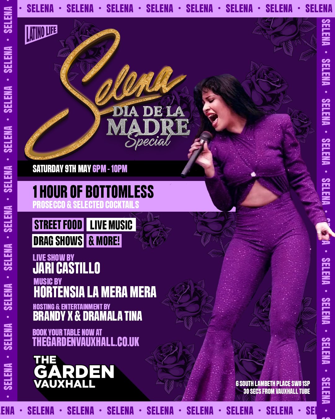 After 3 massive SOLD OUT Parties, we are back on Saturday 9th May! The Garden Vauxhall is transforming into a full-blown Tejano fiesta from 6pm to 11pm. We're celebrating the iconic Selena Quintanilla and trust us, this Queen of Tex-Mex definitely deserves a party fit for royalty!